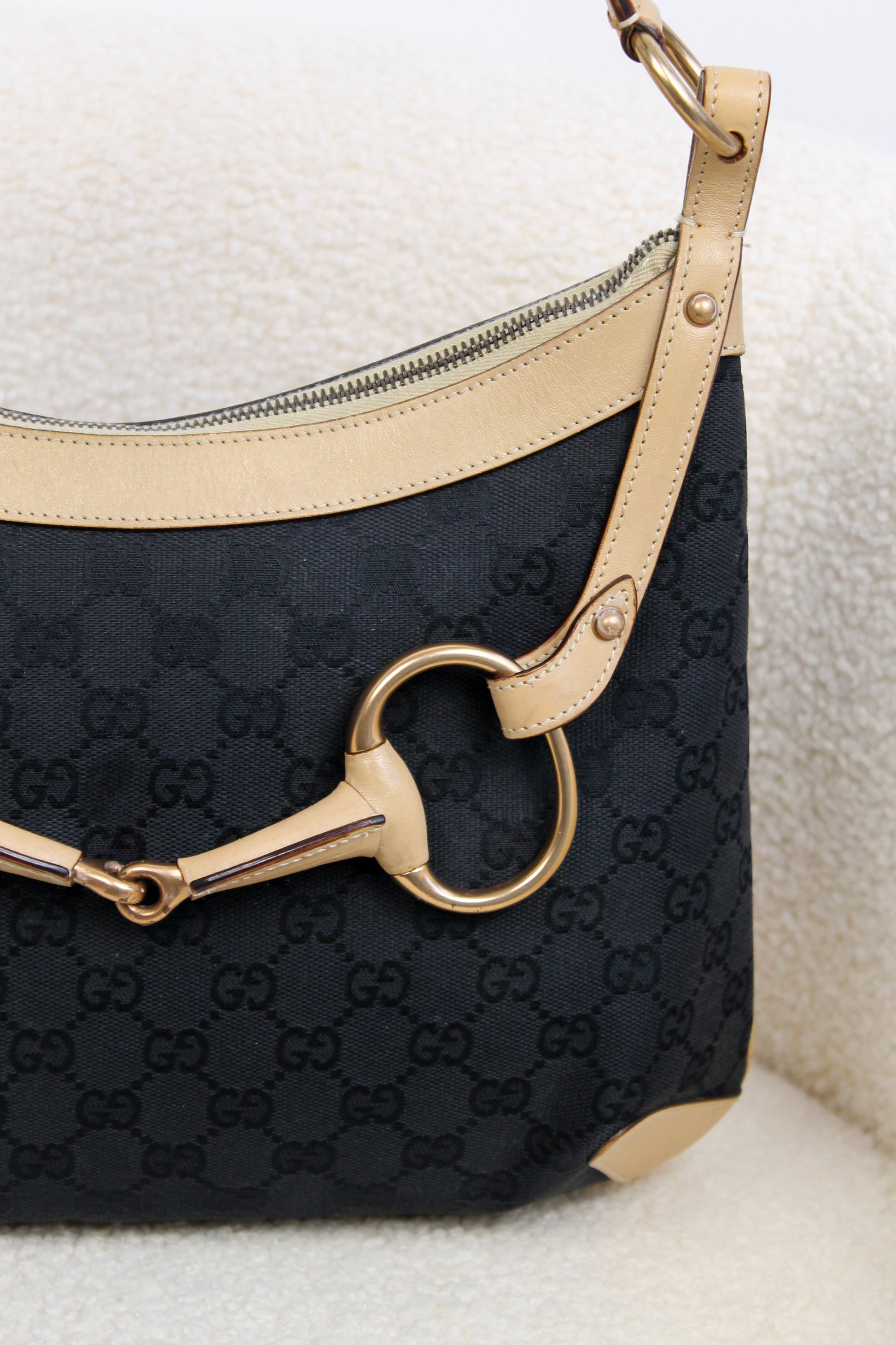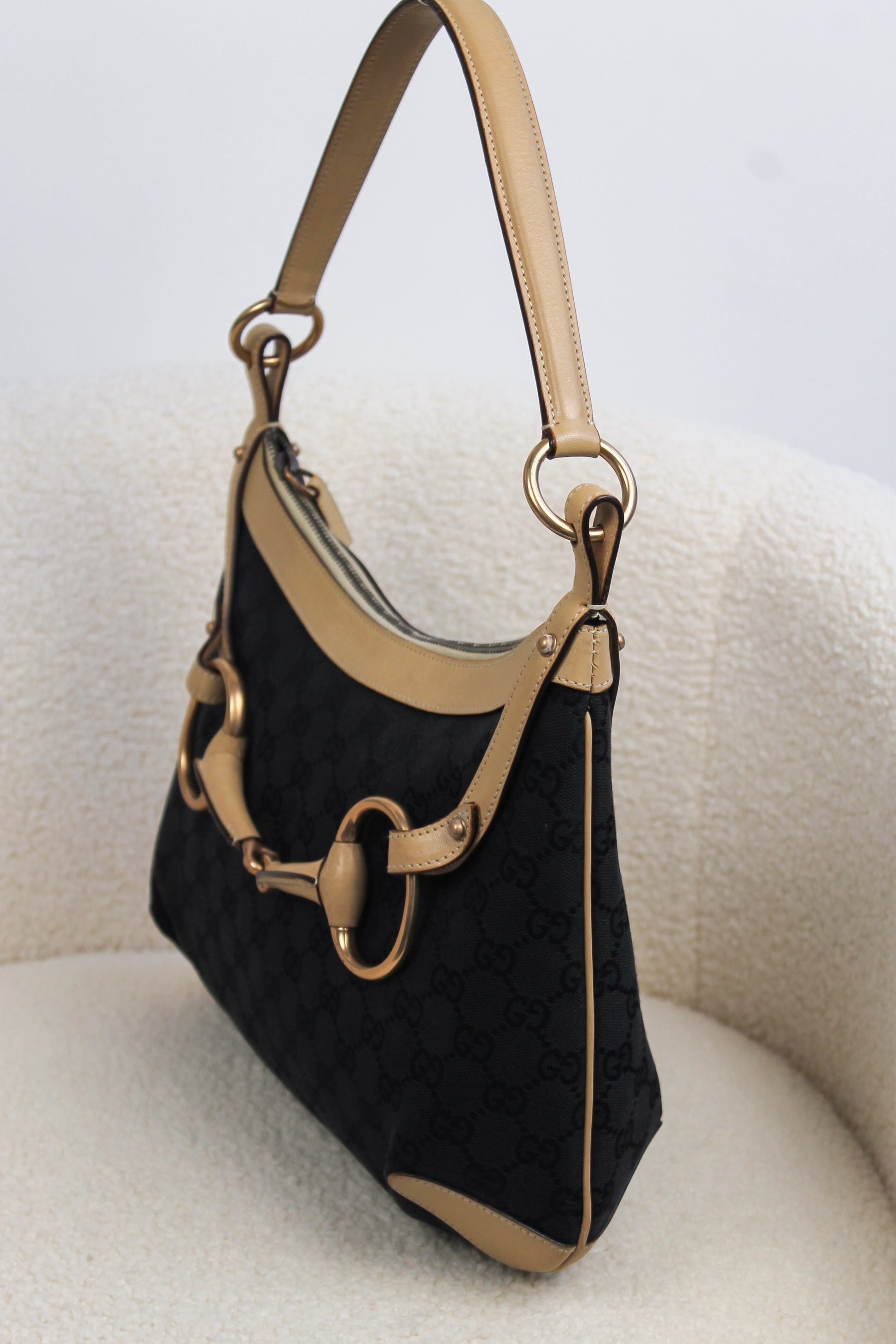 Gucci Horsebit Black Canvas Shoulder bag